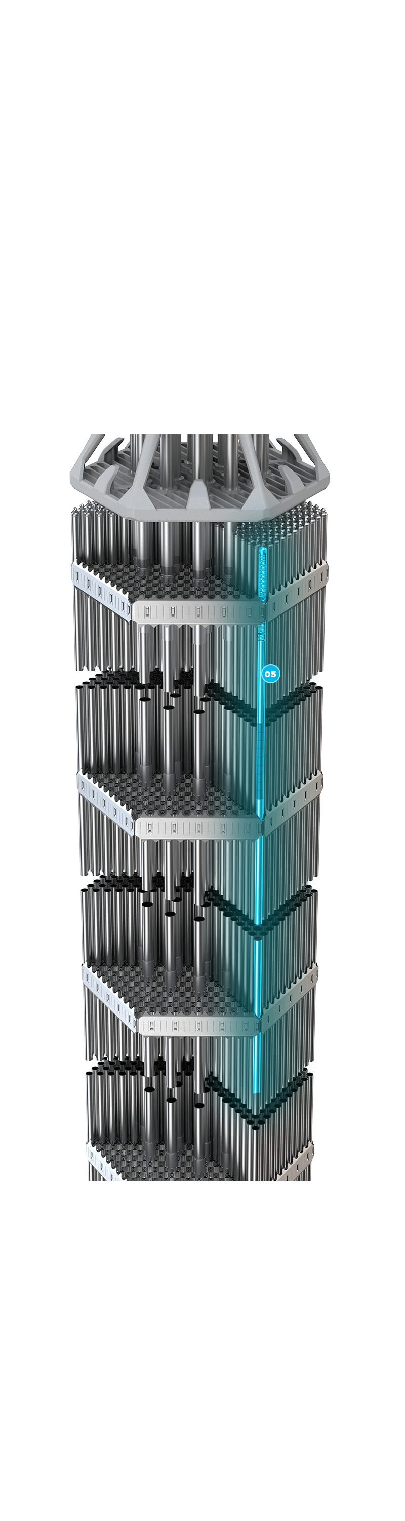 Made from Optimized ZIRLO™ which provides additional margin against corrosion. The fuel rod contains UO2 pellets stabilized by a plenum spring to mitigate pellet stack movement.